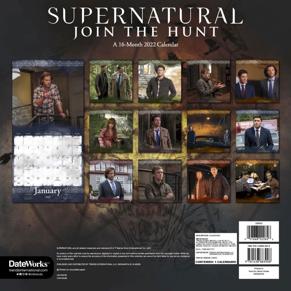 Supernatural kalender 2022. Weve got you covered with the Den of Geek 2021 TV Premiere Dates Calendar where we keep track of. A Wonder Story Puss in Boots. Official Supernatural 2022 Calendar - Month To View Square Wall Calendar The.